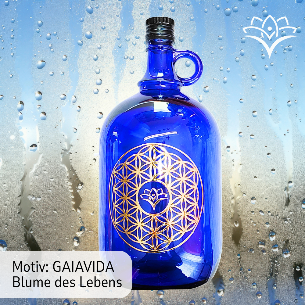 Die Flasche ist mit der GAIAVIDA Blume des Lebens veredelt – einem uralten Symbol für Harmonie, Ordnung und die universelle Lebensenergie. Sie steht für Ausgleich, Ganzheit und die natürliche Struktur allen Lebens und verleiht der Flasche eine besondere, tiefgehende Bedeutung.