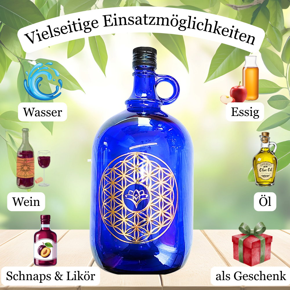 Mit dieser 2-Liter-GAIAVIDA-Blauglasflasche entscheidest Du Dich für eine durchdachte Verbindung aus Qualität, Symbolik und Funktion. Sie unterstützt Dich dabei, Wasser und andere wertvolle Flüssigkeiten achtsam, stilvoll und nachhaltig aufzubewahren – Tag für Tag.